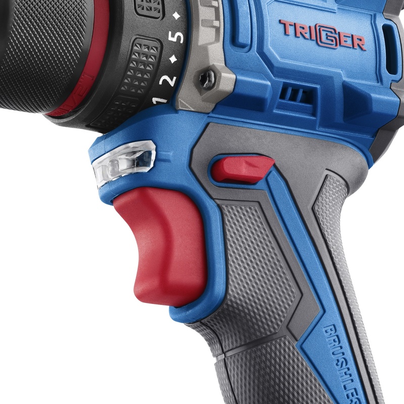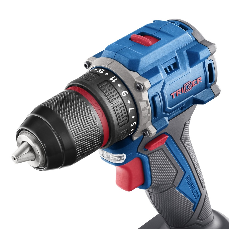 Дрель-шуруповерт Trigger 20121 - мощный бесщеточный шуруповерт с единой аккумуляторной платформой. Отсутствие щеточного узла приводит к уменьшению размера инструмента и увеличивает ресурс двигателя. Металлический 13 мм патрон с функцией Autofix позволяет заменять оснастку одной рукой и определять усилие ее фиксации по характерным щелчкам, а также использовать оснастку больших размеров.