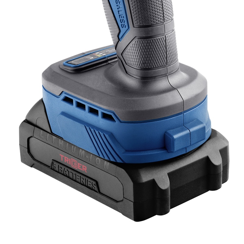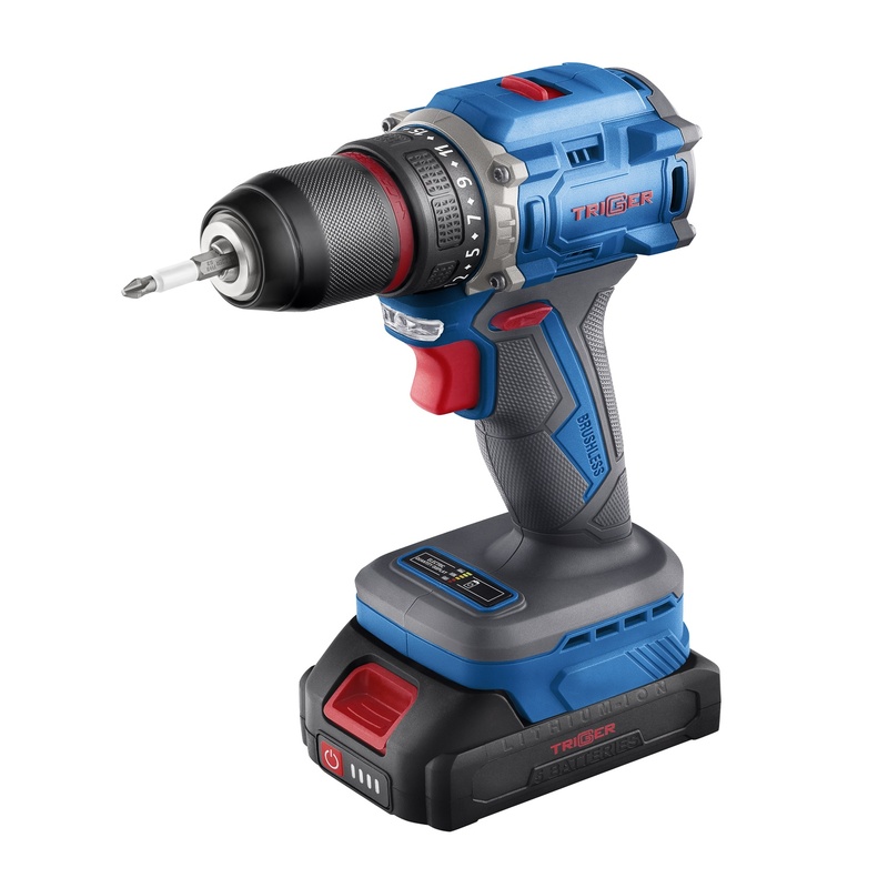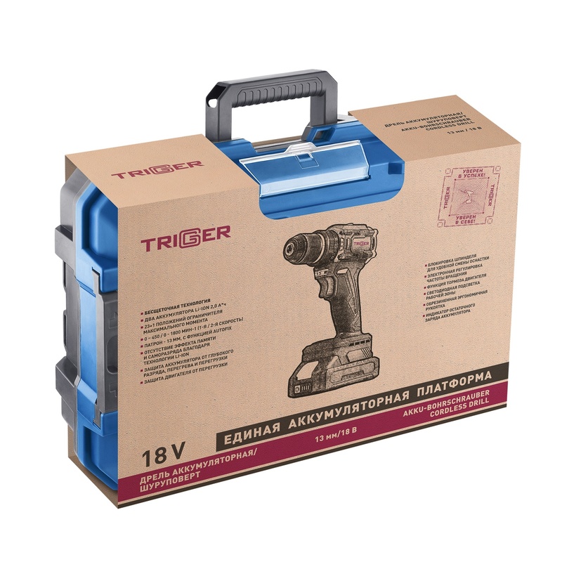 Дрель-шуруповерт Trigger 20121, бесщеточная, 2 аккумулятора Li-ion (2Ач), 18V, 13 мм, 58 Нм, кейс в Нижнем Новгороде