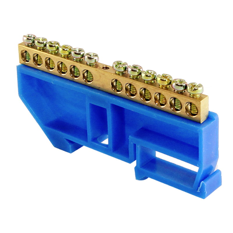 Шина "N" нулевая с изолятором на DIN-рейку 100А, 6х9 мм (12 отв.) большая стойка
