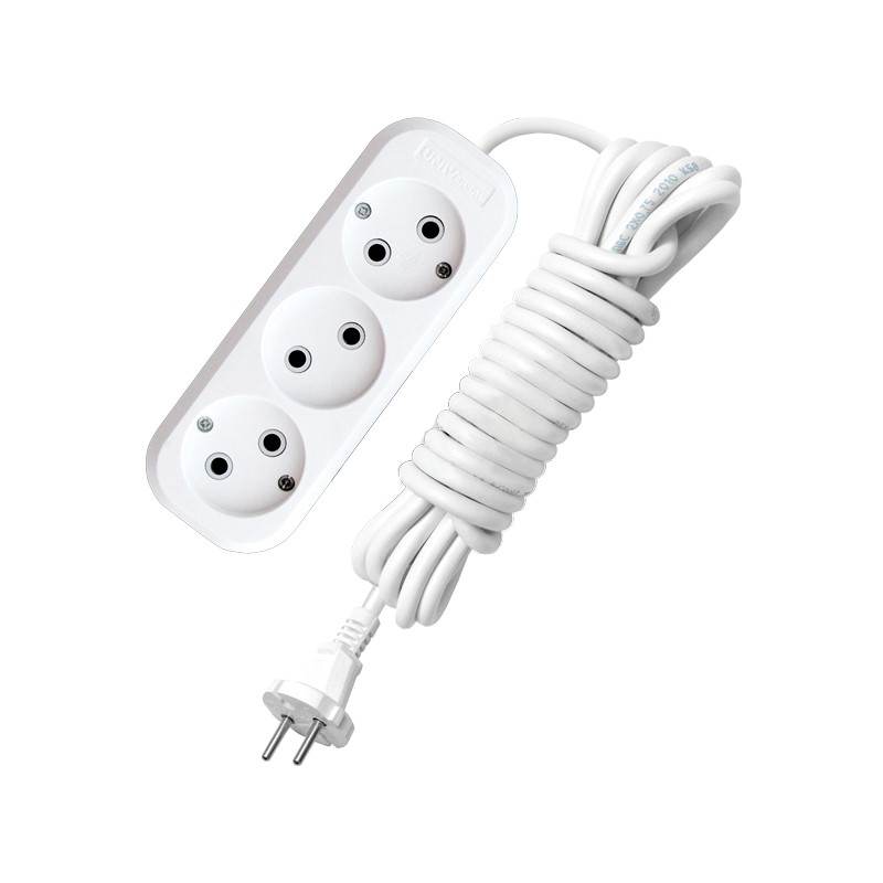 Удлинитель бытовой 9631978, 3 гнезда, ПВС 3х1, 2990 Вт, с/з, 5 м, белый